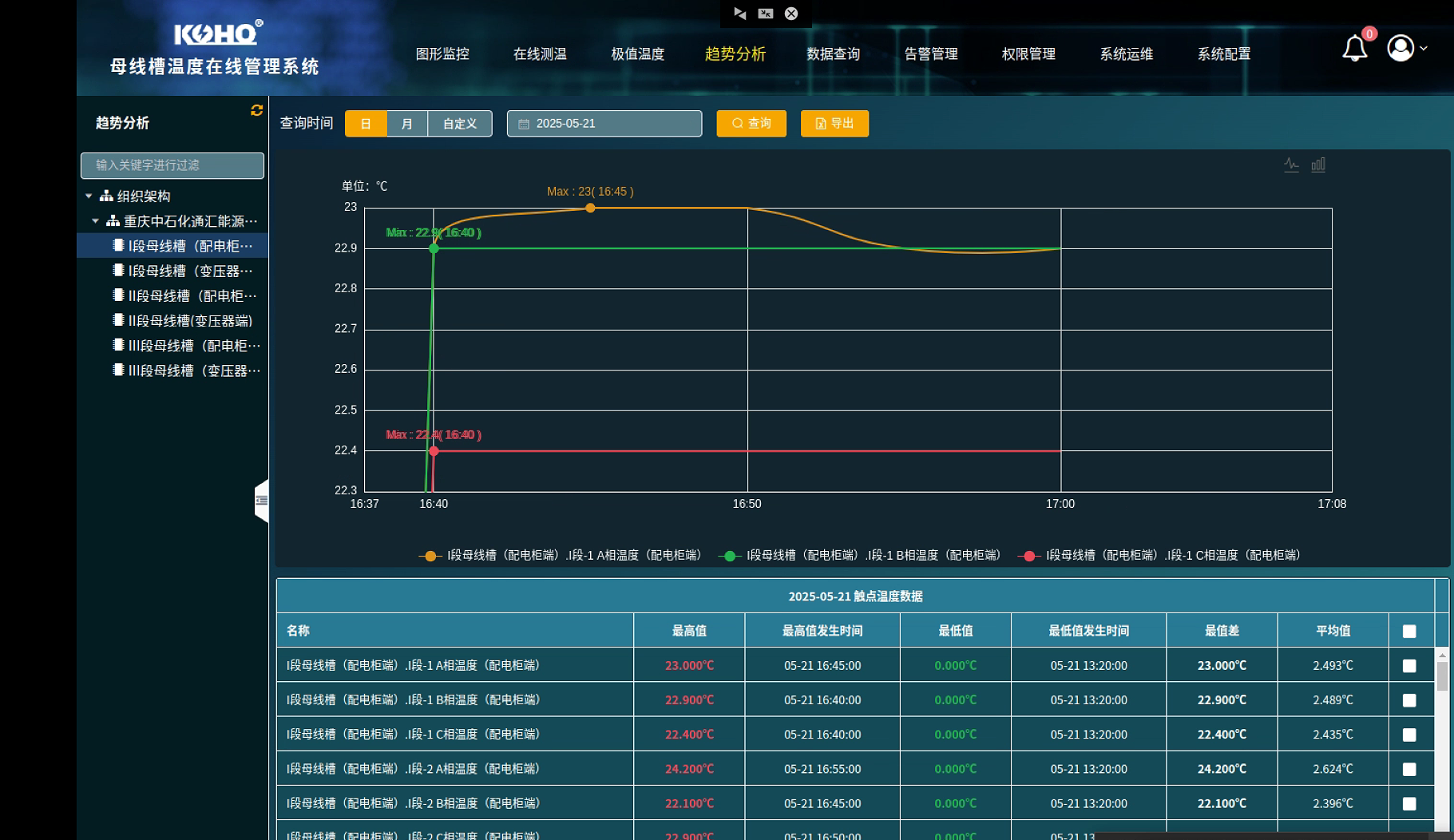 在重慶涪陵液化天然氣工廠的控制中心,大屏幕上實時跳動著數(shù)百個溫度數(shù)據,KH-CWR2000后臺系統(tǒng)正無聲監(jiān)控著廠區(qū)每一個電力接點的“體溫變化”。